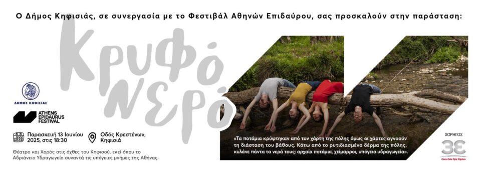 Ο  Δήμος Κηφισιάς ανακοινώνει ότι εξαντλήθηκαν οι δωρεάν θέσεις για την παράσταση της Παρασκευής 13 Ιουνίου 2025 του έργου «Κρυφό Νερό», που ο Δήμος  μας σε συνεργασία με το Φεστιβάλ Αθηνών Επιδαύρου, έχει την τιμή να φιλοξενεί για πρώτη φορά στα 70 χρόνια ιστορίας του θεσμού, 6 ξεχωριστές παραστάσεις Θεάτρου και Χορού!