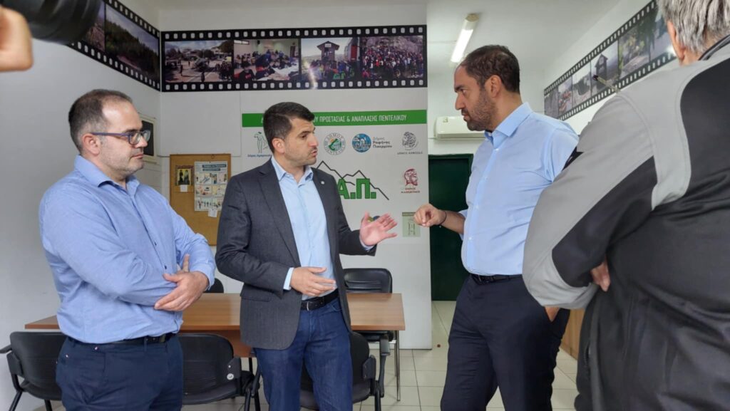 Κατά τη διάρκεια της εποικοδομητικής συνάντησης, ο κ. Ξυπολυτάς, μεταξύ άλλων, ενημέρωσε την ηγεσία του Υπουργείου για τις στοχευμένες πρωτοβουλίες και δράσεις του Συνδέσμου, οι οποίες υλοποιούνται εντός των αρμοδιοτήτων και των οικονομικών δυνατοτήτων του, με σκοπό την αποτελεσματική προστασία και αναβάθμιση του Πεντελικού Όρους. Ιδιαίτερη αναφορά έγινε στην ενίσχυση και ανανέωση του στόλου των οχημάτων που χρησιμοποιούνται για την υλοποίηση αυτών των δράσεων, αλλά και στην πρόταση-μελέτη που έχει κατατεθεί σε συνεργασία με την Πυροσβεστική για τη διάνοιξη δασικών δρόμων και αντιπυρικών ζωνών ιδιαίτερα στο δυτικό κομμάτι της Πεντέλης. Παράλληλα, ο κ. Ξυπολυτάς τόνισε την επιτακτική ανάγκη για ουσιαστική οικονομική στήριξη, προκειμένου να ενισχυθούν οι Δήμοι, με έμφαση στους Δήμους που υπέστησαν σοβαρές καταστροφές από τις πρόσφατες πυρκαγιές, ώστε να διασφαλιστεί η ταχεία αποκατάσταση και η πρόληψη μελλοντικών κινδύνων.
