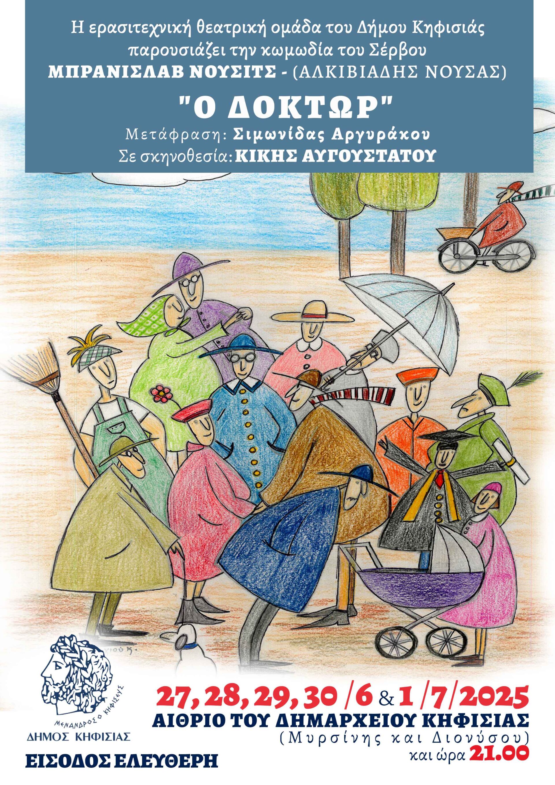 Η ερασιτεχνική θεατρική ομάδα του Δήμου Κηφισιάς παρουσιάζει την κωμωδία του Σέρβου  ΜΠΡΑΝΙΣΛΑΒ ΝΟΥΣΙΤΣ – (ΑΛΚΙΒΙΑΔΗΣ ΝΟΥΣΑΣ) “Ο ΔΟΚΤΩΡ” στις 27, 28, 29, 30 /6 &...