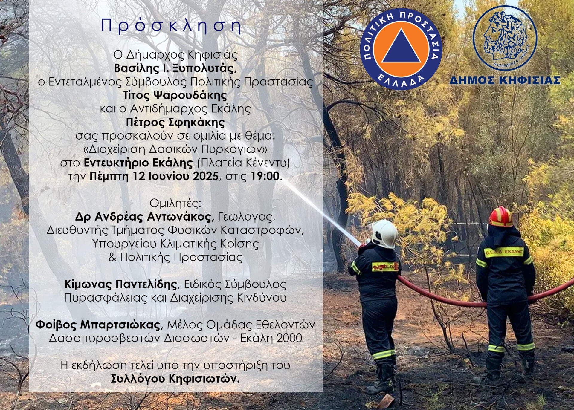 Πρόσκληση σε ομιλία για τη Διαχείριση Δασικών Πυρκαγιών, 12/6 στην Εκάλη